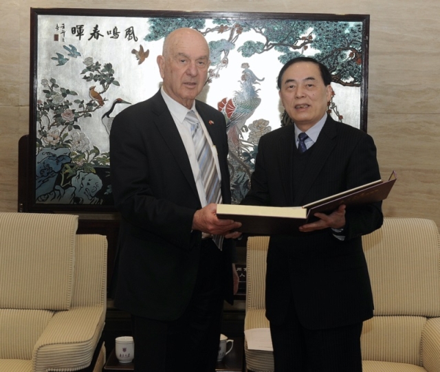 President Chen Jun and Matan Vilnai, ambassador of the State of Israel to China, reached agreement on the Israeli support for Nanjing University to establish an Israel-China Institute of Jewish Studies during the visit of the ambassador and his entourage to the university in the morning of December 14, 2016.
