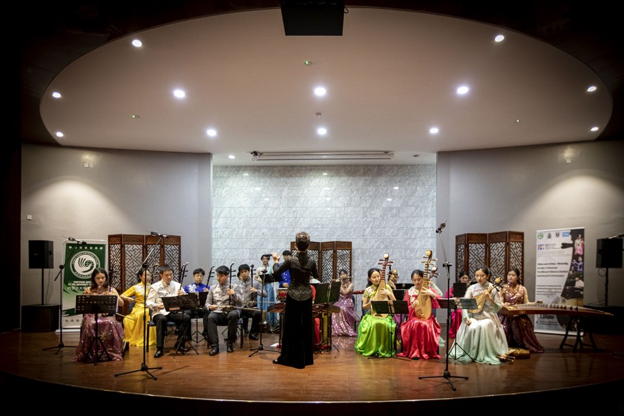 Members of the traditional instrument orchestra of China's Nanjing University perform at the University of Nairobi in Nairobi, Kenya, on April 18, 2024. (Xinhua News Agency/Li Yahui)