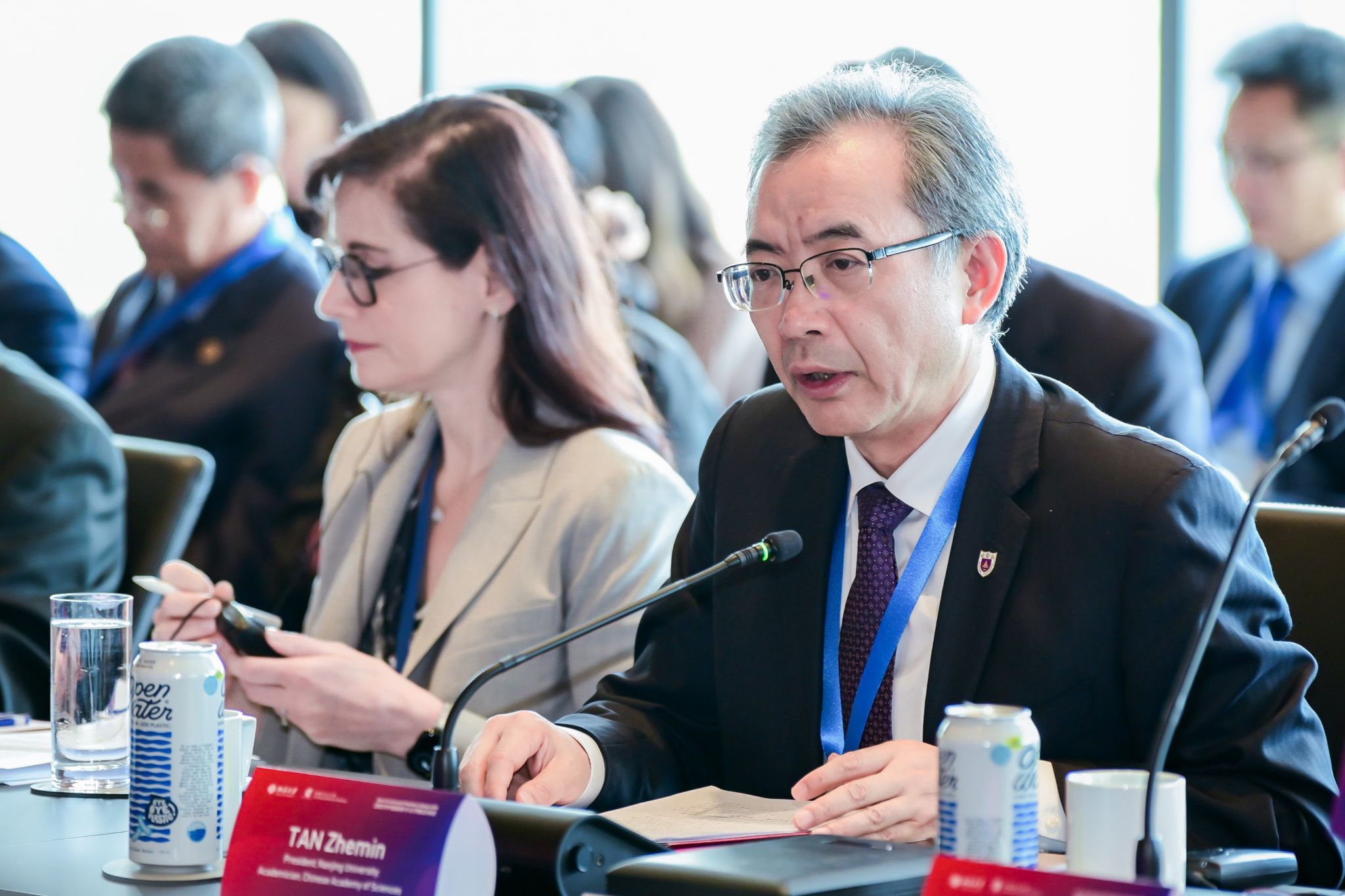Tan delivered a keynote speech during a roundtable discussion with the theme of "Opportunities and Challenges: Integrating Artificial Intelligence Technology into Education." He elaborated on the profound impact of artificial intelligence on students, teachers, the "teaching-learning" relationship, and on universities as a whole. He introduced NJU's efforts to improve students' artificial intelligence literacy, such as intergrating AI courses into the undergraduate curriculum through the program of "Artificial Intelligence General Education Core Courses." These efforts would deepen student's understanding of AI while encouraging interdisciplinary integration between AI and various academic fields. He also called on universities in China and the United States to jointly and actively respond to the challenges posed by the era of artificial intelligence, and accelerate the innovative application of artificial intelligence in higher education.