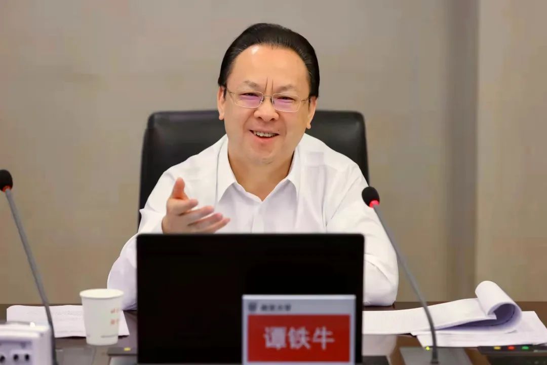Tan Tieniu listened attentively to the reports and inquired in detail about specific points while fully affirmed everyone’s contribution to the reform and development of Nanjing University.