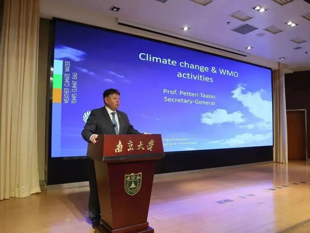 After the meeting, Prof. TAALAS made an academic report on the theme of Climate Change and WMO activities at the university library lecture hall. The delegation then visited the Station for Observing Regional Processes of the Earth System (SORPES) at the School of Atmospheric Sciences.