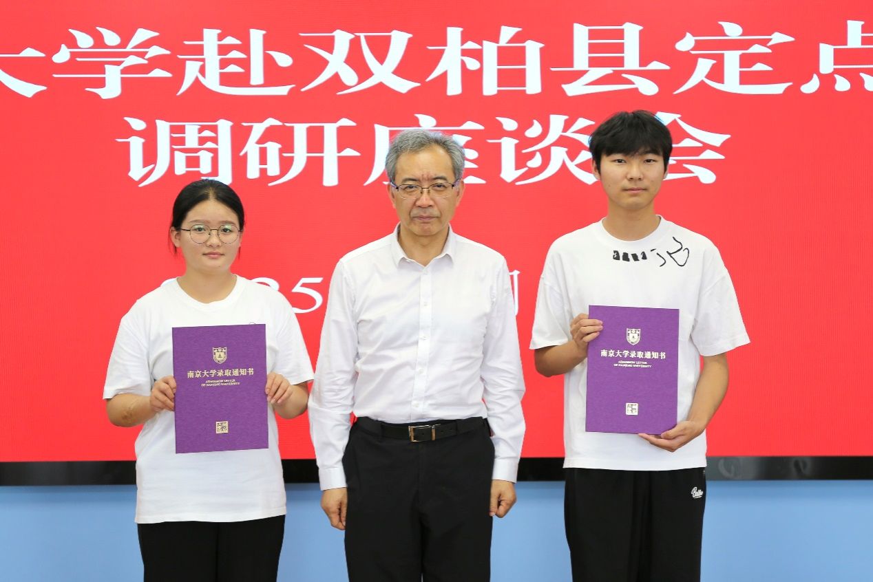 谈哲敏为双柏一中毕业生、凯发k8官网新生王烨怡、谢孟良颁发录取通知书