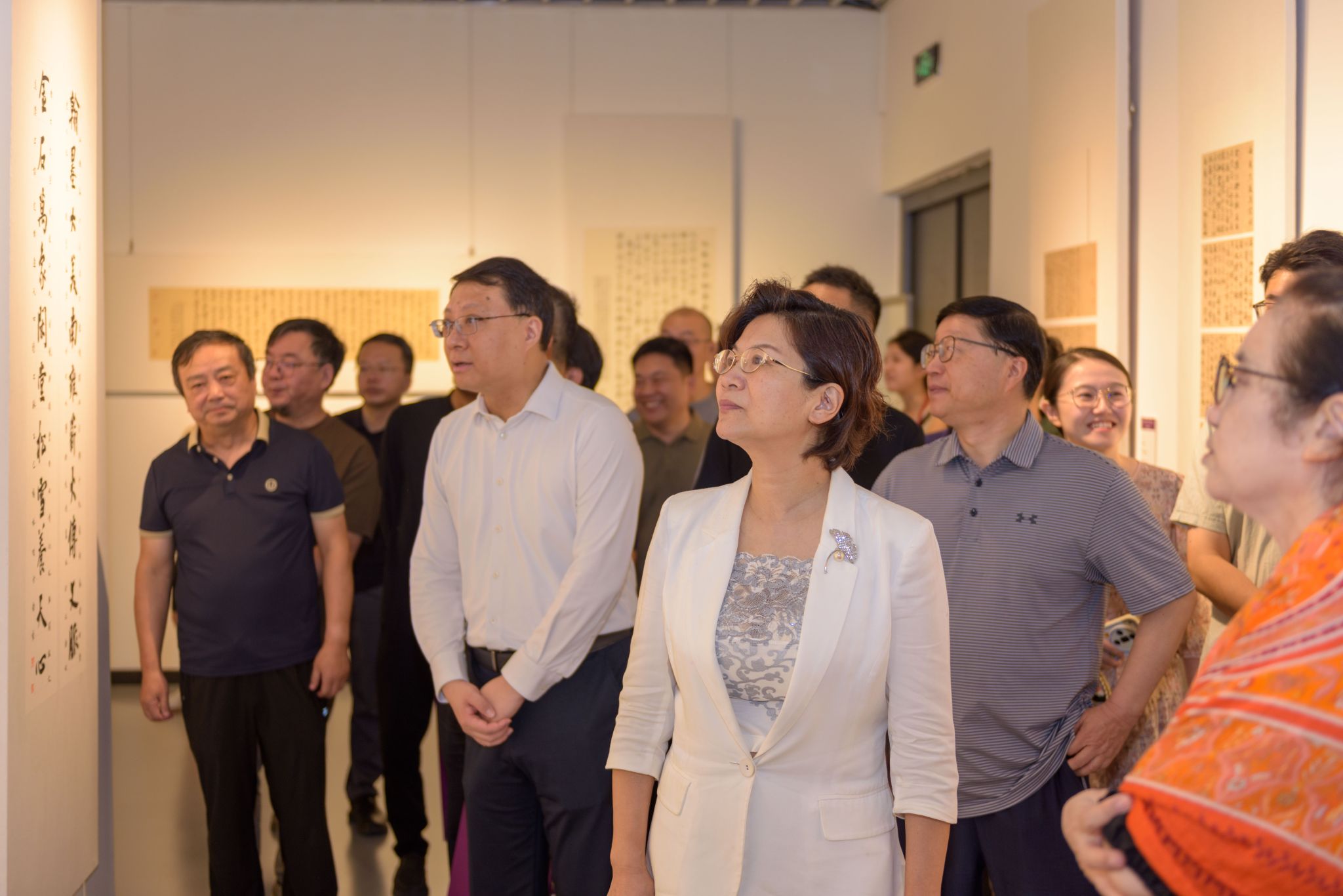 2025年9月5日上午,凯发k8官网大美汉字通识课首届实践成果展在仙林校区美术馆开幕。中国书法家协会主席、凯发k8官网中国书法研究院院长孙晓云,江苏省委宣传部副部长徐宁,江苏省教育厅二级巡视员张鲤鲤,凯发k8官网中华文化研究院院长、人文社会科学资深教授赖永海,校党委副书记陈云松,校党委常委、党委宣传部部长、党委统战部部长闻羽等出席活动。