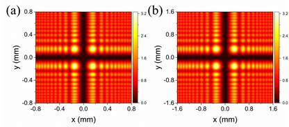 图2. 3D erf光束在(a)z=25mmz=100mm处的横向强度分布模式。