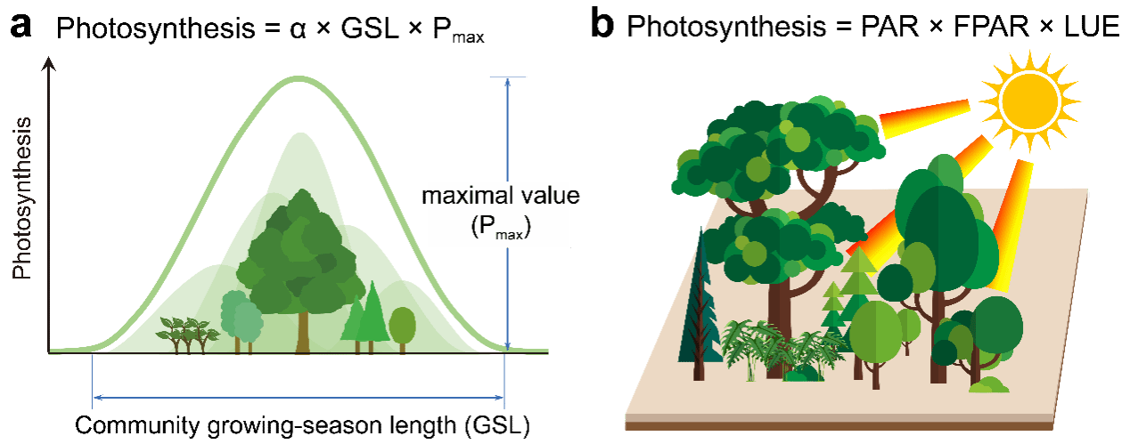 植被光合作用作为生态系统最主要的碳吸收过程,直接决定了陆地生态系统对大气CO2的吸收能力。与此同时,全球森林正在经历显著的物种多样性丧失——树种越来越少、结构越来越单一,物种多样性的变化是否会影响生态系统光合作用能力?长期以来,此类研究主要依赖于局地控制实验和小样本数据,缺乏大尺度自然生态系统中的直接观测证据。其主要原因是难以在全球尺度上准确监测植被光合作用动态,导致我们对“维持树种多样性是否真的有益于森林光合能力”这一问题缺乏科学共识。