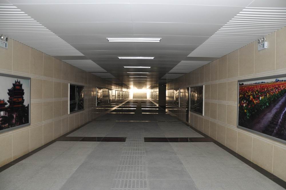 验收组在查看了过街通道现场后,听取了施工单位、监理单位、代建单位和设计单位的工程汇报。汇报指出,本工程总造价为1430余万元,从2009年3月18日开工,至12月18日完工,共历时九个月,工程的各项指标在单项验收中100%合格,具有质量优、工期短、成本低等优势。消防、质监和大学城管委会对工程的质量给予充分肯定。