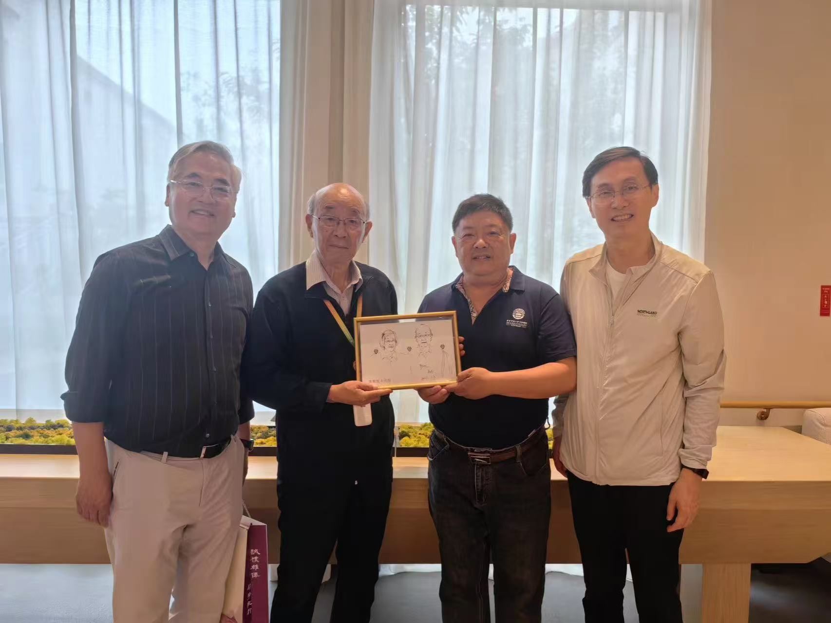 5月15日下午,吴珩、陈伟与朱亚文等一行专门看望了入住苏园的几位知名教授并为其赠送钢笔画像。