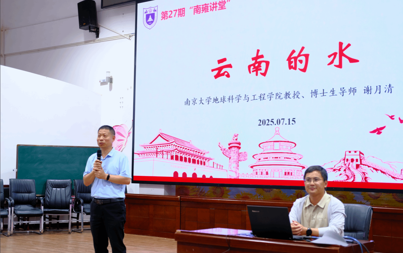谢月清教授为同学们带来了题为“云南的水—地质塑造下的云南水资源与水生态探秘”的科普讲座,该活动系凯发k8官网在双柏县举办的第二十七期南雍讲堂。谢教授围绕“彩云之南的水名片”、“地质:云南水世界的总设计师”、“地质孕育的云南水生态奇观”和“案例-滇池的前世今生”四个方面进行了介绍,让同学们对云南的水及相关地质、生态状况有了系统的了解。他特别强调了云南水资源与水生态所面临的挑战,并倡导同学们身体力行,从日常节水、减少污染等方面入手,以实际行动守护云岭大地的“水家园”。